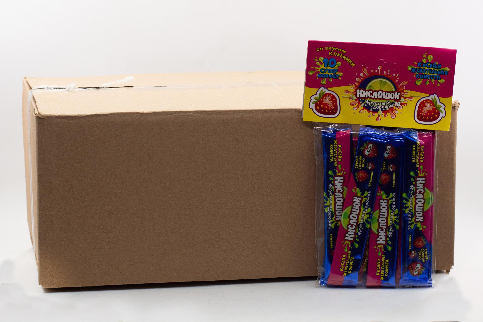Кислая жевательная конфета Кислошок - фруктовая дорожка 10 со вкусом клубники (Россия) 120г0,00 руб. за штуку (в упак. 36 шт.) |