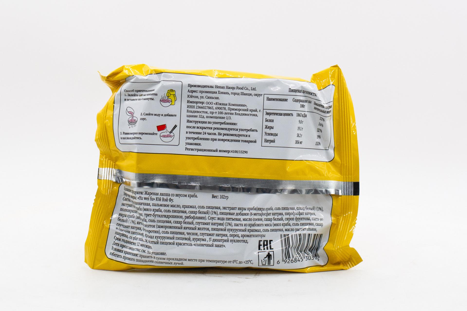 Лапша жареная Юй Вэй Фу со вкусом краб (Китай) 102г0,00 руб. за штуку (в упак. 5 шт.) |