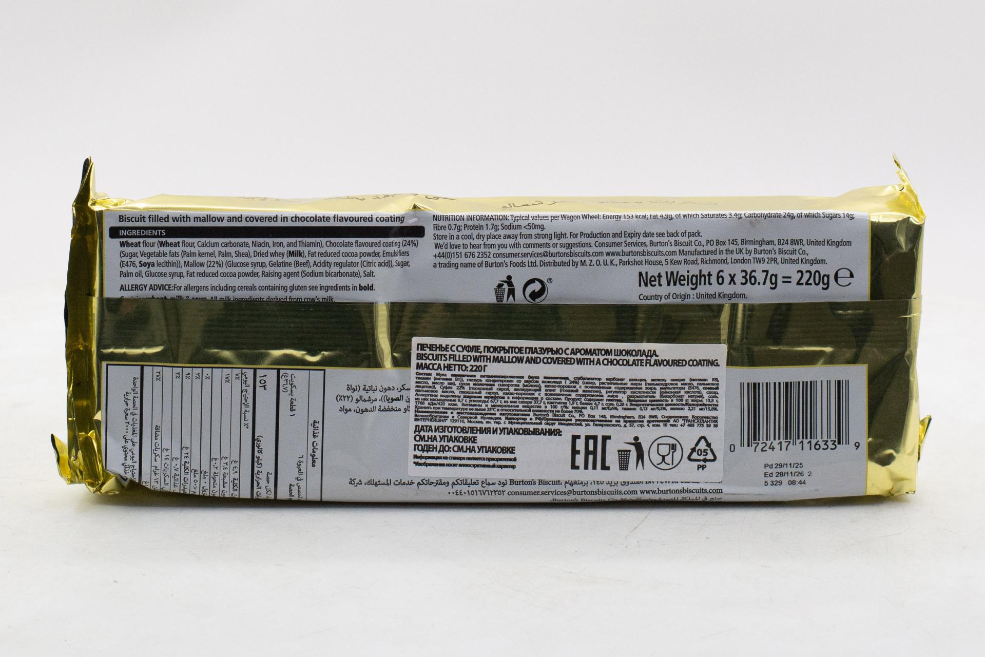 Печенье с суфле, покрытое глазурью с ароматом шоколада золото Wagon Wheels (Великобритания) 220г0,00 руб. за штуку (в упак. 24 шт.) |